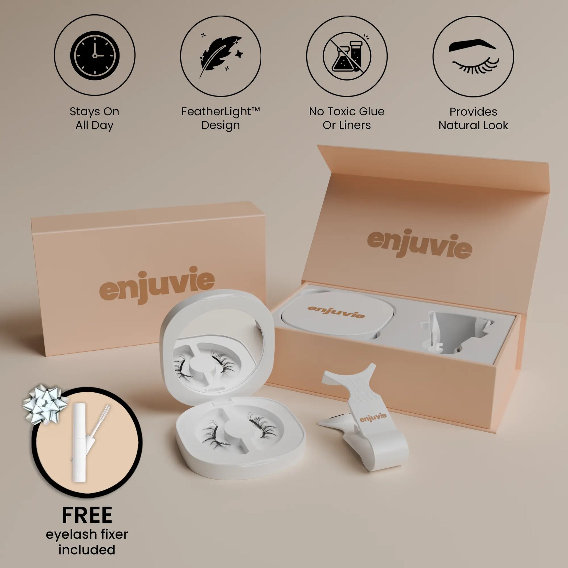 Unlock the secret to easy, glue & liner-free application with Enjuvie. Embrace effortlessly beautiful, natural-looking lashes without any risk to your eyes.